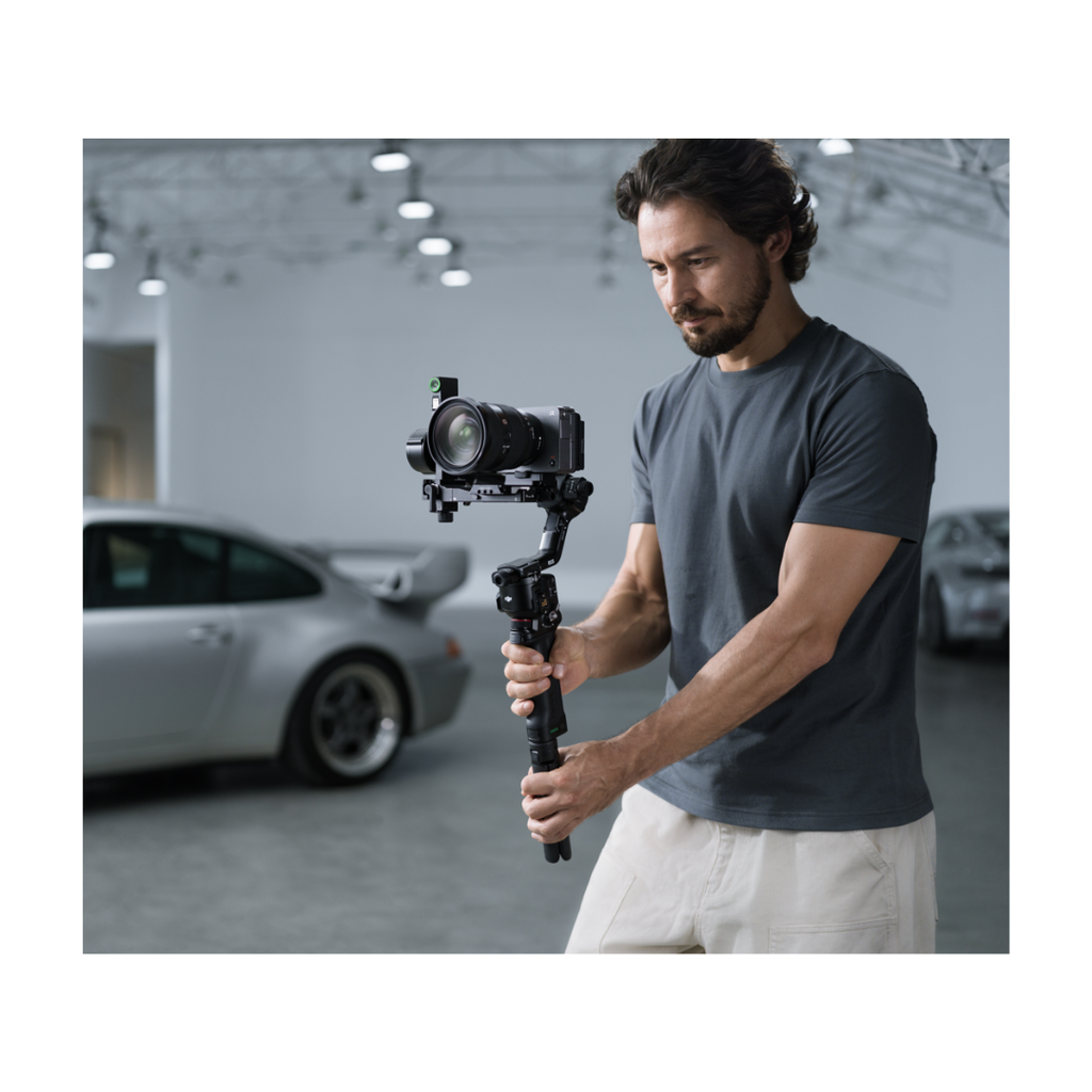 The DJI RS 5 features touchscreen subject selection with the new tracking module, smooth balancing from fine-tuning knobs, and direct control via the new briefcase handle all backed by faster charging and extended battery life.